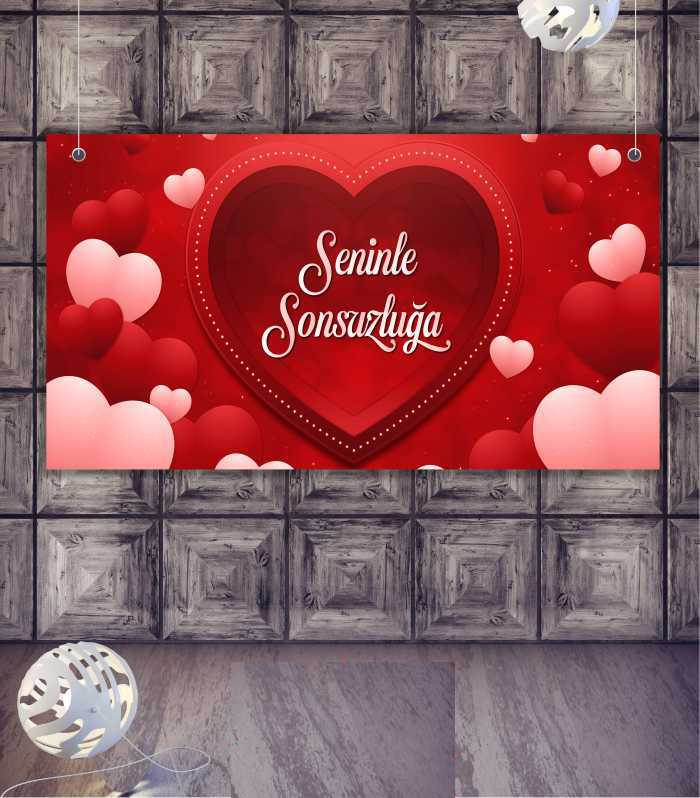 Kırmızı Kalpler Arasında Evlilik Teklifi Afişi, aşkın en klasik sembolü olan kırmızı kalplerle dolu zarif bir tasarıma sahiptir. Kalplerin etrafında konumlandırılmış yazı alanı, teklif mesajını ön plana çıkarır.